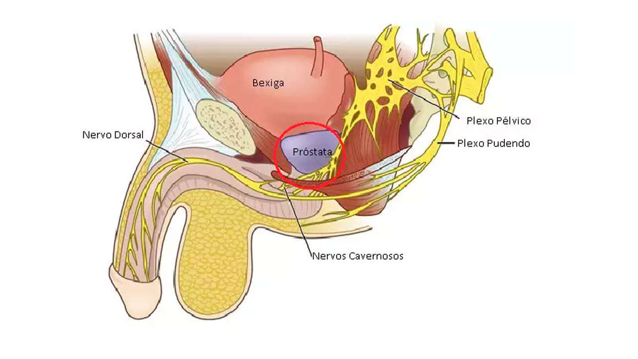 Os nervos responsáveis pela ereção, saem da medula espinhal, passam ao redor da próstata e vão para o pênis. Portanto é impossível fazer uma cirurgia para retirada completa da próstata sem que tenha algum grau de lesão desses nervos, podendo ser uma lesão temporária ou permanente. Podemos ter recuperação desses nervos em 6 meses ou até 2 anos após a cirurgia.